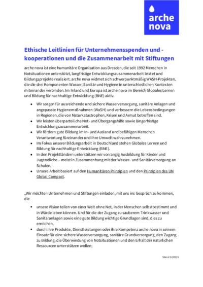 arche nova - Ethische Leitlinien UK und Stiftungen